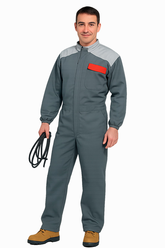 Buzo: Cierre inclinado de cremallera; 1 bolsillo pecho de cremallera con tapa de distinto color, 2 bolsillos parche a la altura de la cadera. Cintura elástica, puño elástico; 1 bolsillo trasero de parche y 1 de metro en pierna.